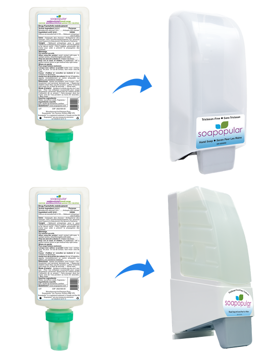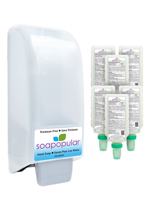 Soapopular® Triclosan-Free No-Cover Manual Dispenser + Refill Package