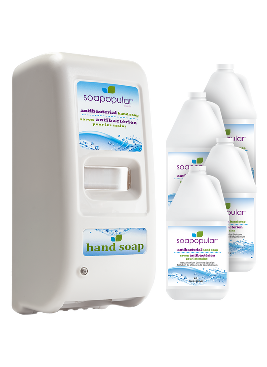 Soapopular® Triclosan-Free Antibacterial Foaming Hand Soap Automatic 1L Dispenser + 4L Bulk Soapopular® Triclosan-free Antibacterial Foaming Hand Soap Jug refill Package