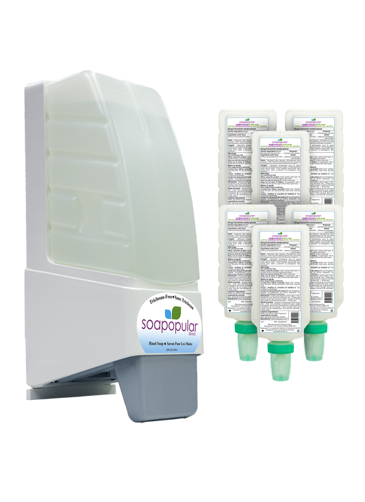 Soapopular® Triclosan-Free Covered Manual Dispenser + Refill Package