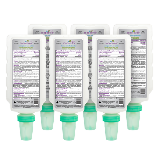 PROMOTION* Soapopular Plus® 70% Alcohol Foam Hand Sanitizer 1 L Cartridge Refill (6PK) & Receive 1 FREE Wall Covered Dispenser