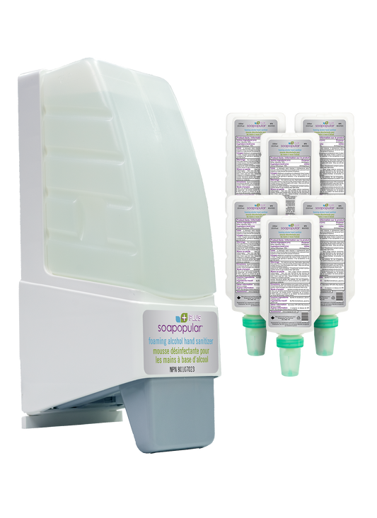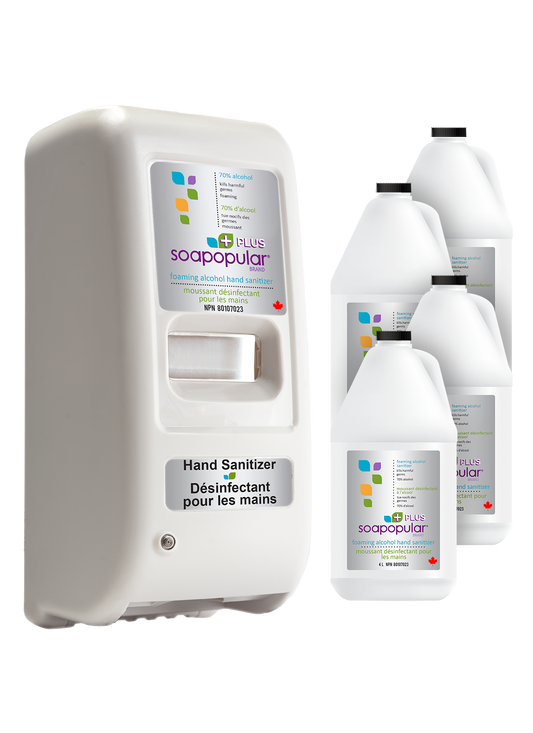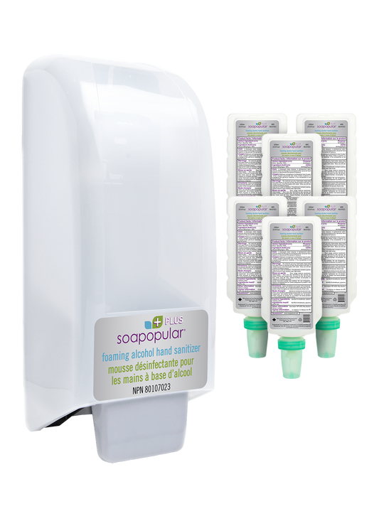 Soapopular Plus® 70% Alcohol Foam Automatic Dispenser + Bulk Fill Package